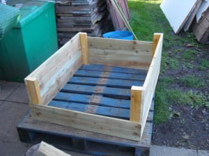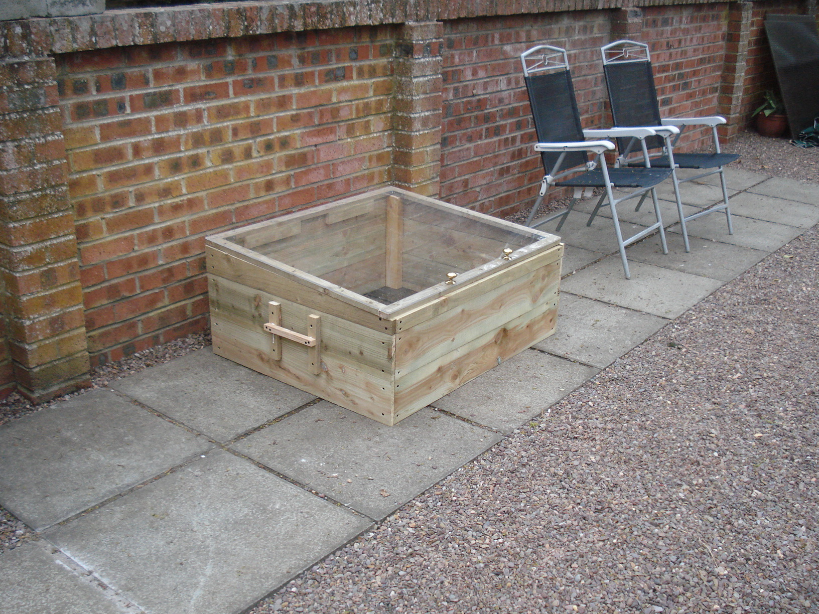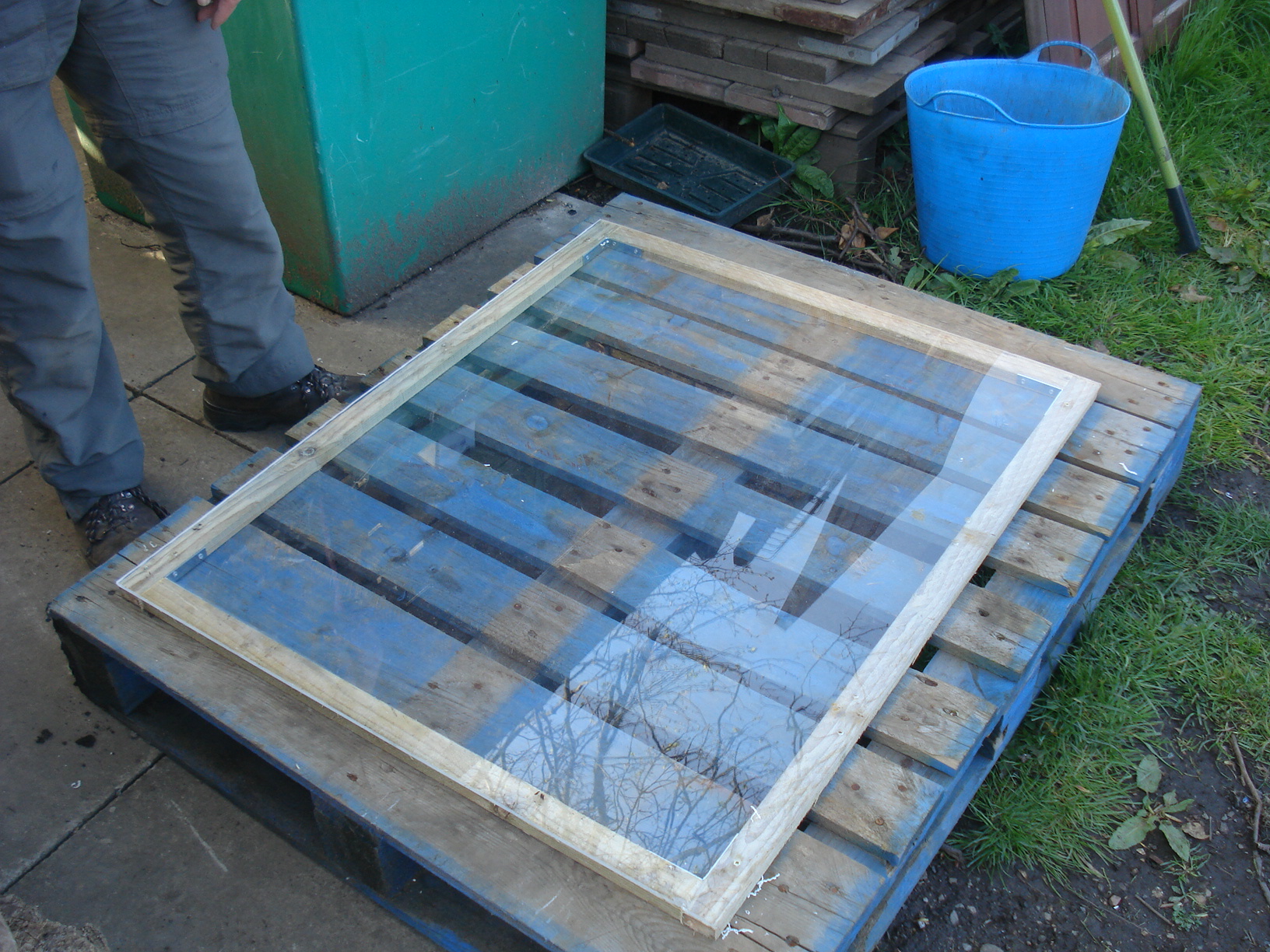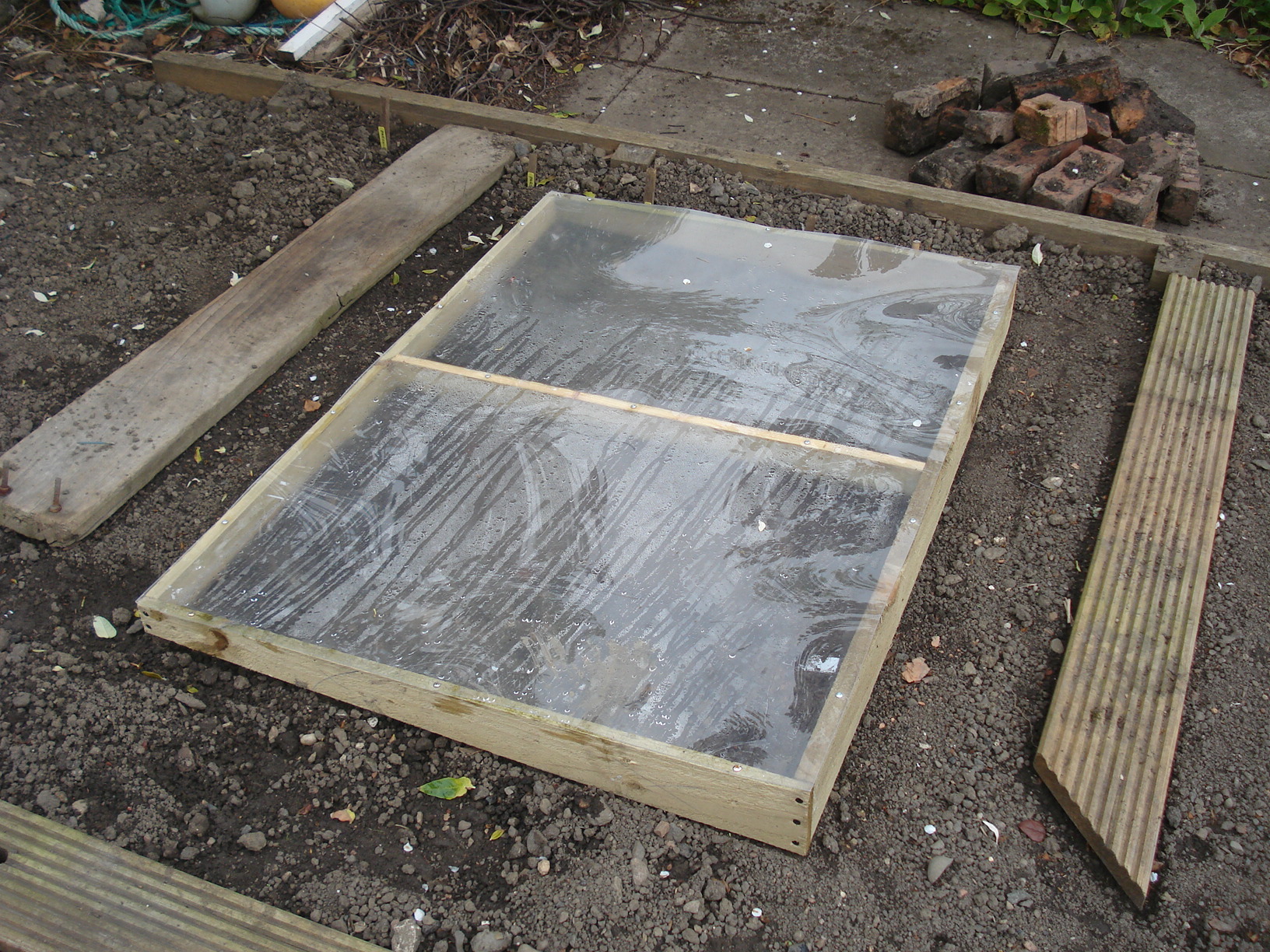 This year we have created a slabbed area specifically for coldframes and Mr Mac decided he would build new ones as soon as he could acquire some perspex to use for lids.