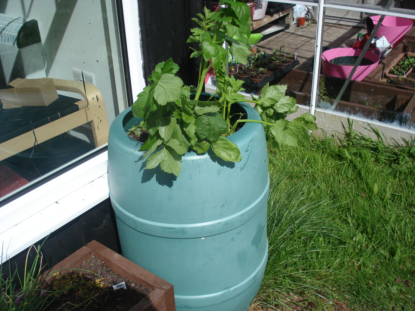 Mr Mac suggested we try and do the same thing with the broken water butt lying at the bottom of the garden…so we did!