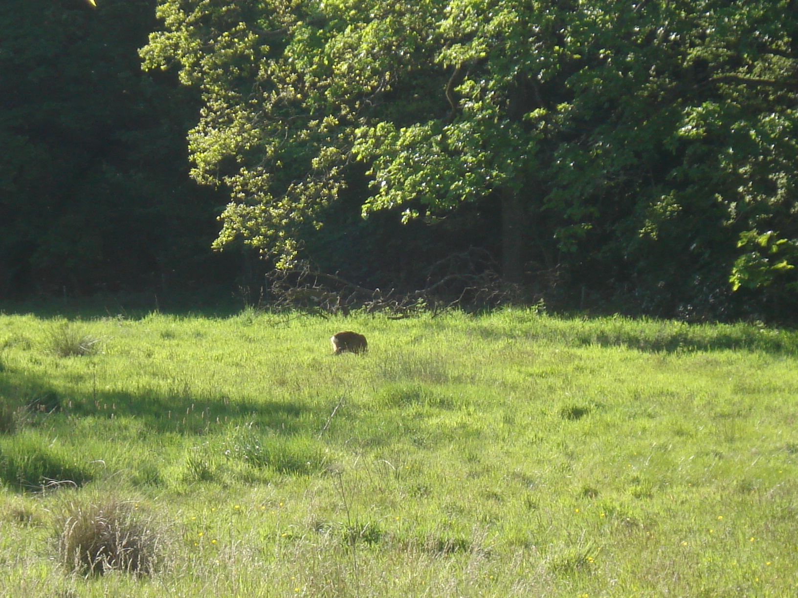 The brown blob you can see is a 3 week old fawn. Unfortunately my camera could not zoom close enough to pick out the white spots. We knew it had been born but only saw it for the first time at the weekend. It’s mother is just behind the bushes to the left of the picture. They were grazing beside our garden all afternoon.