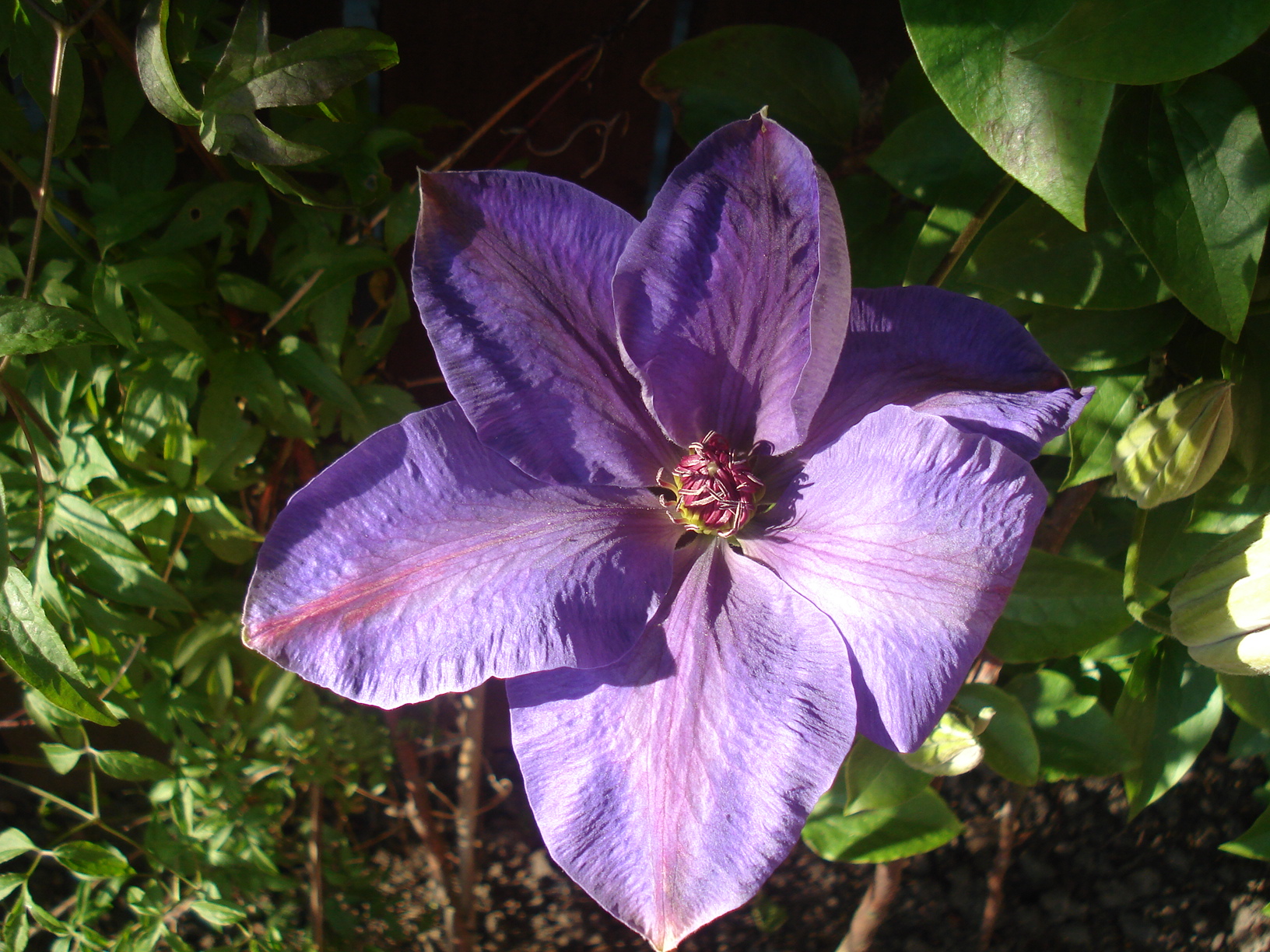 This clemetis was bought 2 years ago from a discount store and it has never failed to produce giant purple flowers. Not bad for 99p!