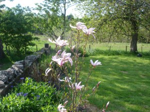 Magnolia Susan was the one. Tolerant of cold and wind – this is Scotland remember! The tree was purchased and planted. A few of the giant pink flowers came out and my gran was thrilled when she saw them.