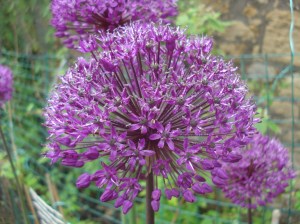 These are allium bulbs we planted in a pot last year. The pot was lying outside the greenhouse and we thought it was empty – so this was a nice surprise. We will definitely plant the bulbs in the ground this year after they have finished flowering.