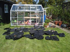 Now I have a conundrum. We had 3 areas for growing veg but due to Mr Mac’s path and wall building project, one of the areas has a mountain of earth piled on top of it. It will eventually become a lovely raised bed enclosed with a stone wall but for the time being it will be sprayed with weed killer, covered in black plastic and left until next year.