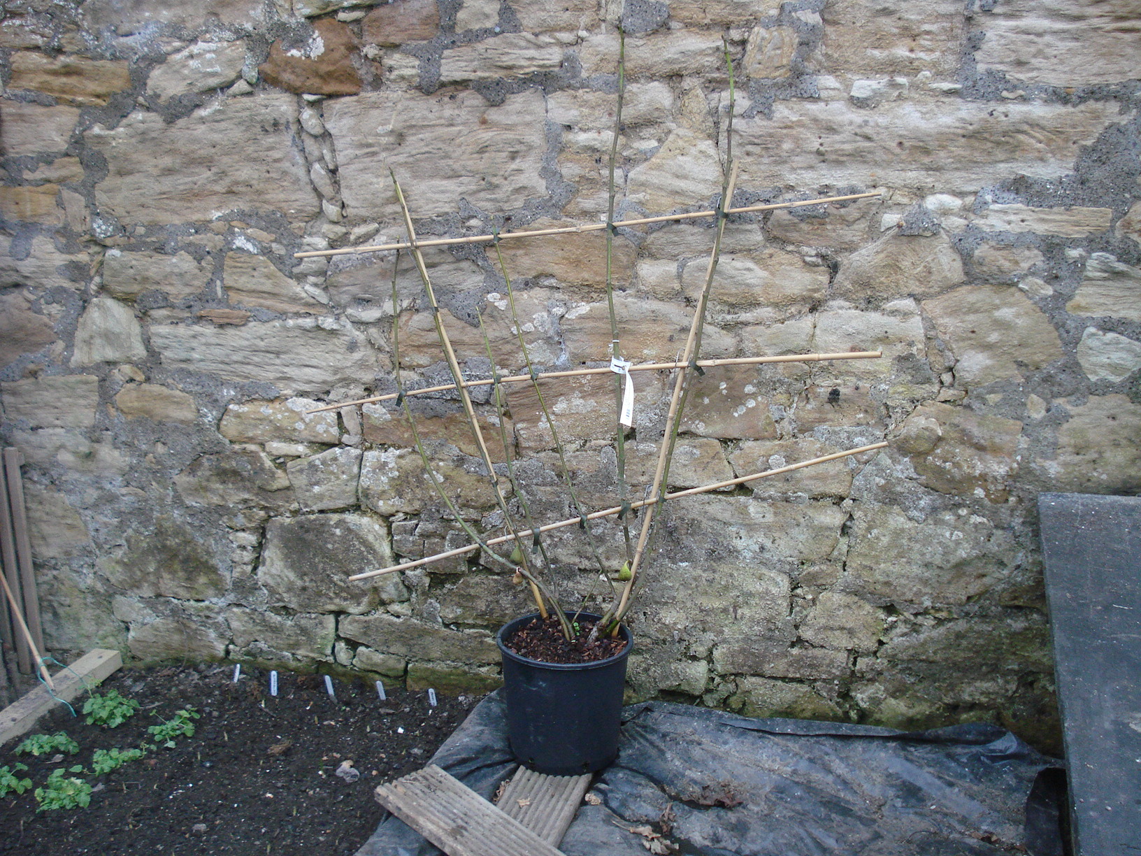 Today we finally planted the First Early potatoes. We bought them weeks ago and they have been lying in the garage in the dark, not on a sunny windowsill to chit! However, no harm done and plenty of growth on each seed potato.