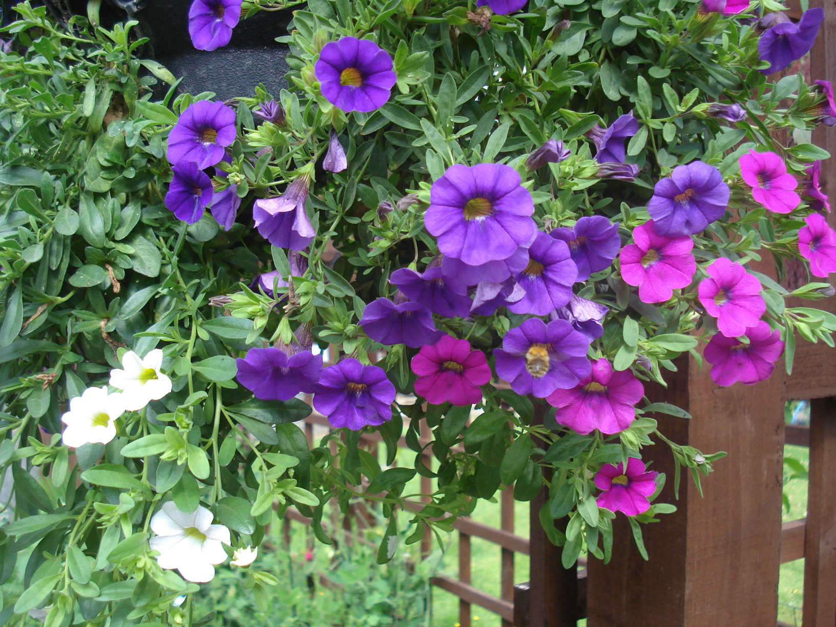 My hanging baskets saw mixed success. I planted them with million bells and trailing lobelia. The yellow millions bells have been lost to white fly. The lobelia was failing to trail but thanks to torrential rain storms over the last couple of days it has now been flattened into submission.