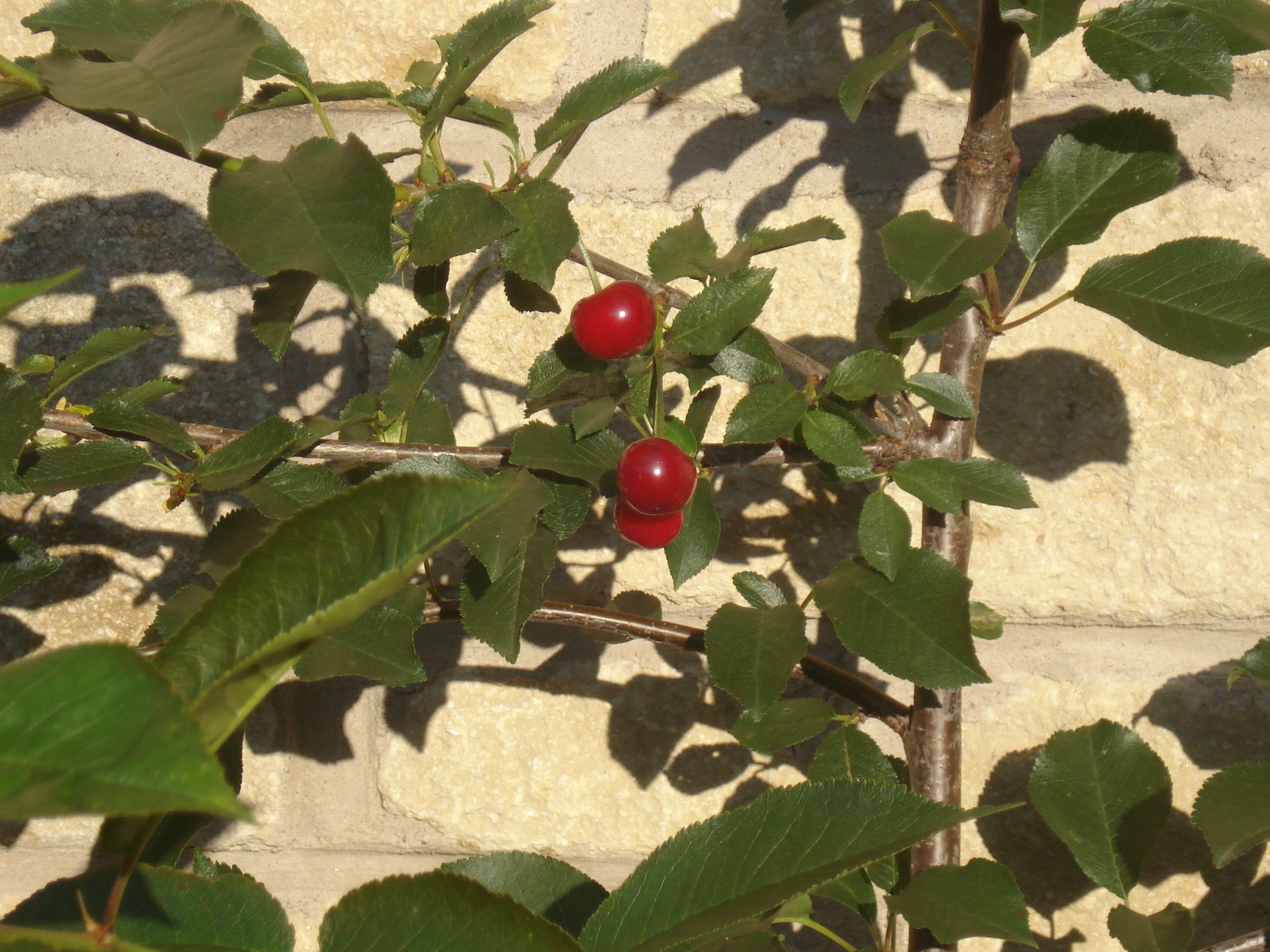 We relocated one of the cherry trees to the back wall of the summerhouse which is north facing. All this has done is provide a haven for the birds to eat the cherries undisturbed! Last year we had 5 cherries, this year it looks as if we may be left with 7! Still no cherry pie or cherry jam boo hoo.