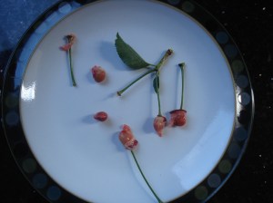 Beside the gooseberry bushes, the redcurrants usually suffered the same disappearing foliage fate. I am please to say this year I have picked my first redcurrants. However, I was positive I planted a red and a whitecurrant bush but the bush I though was a whitecurrant is actually a blackcurrant. Very odd.
