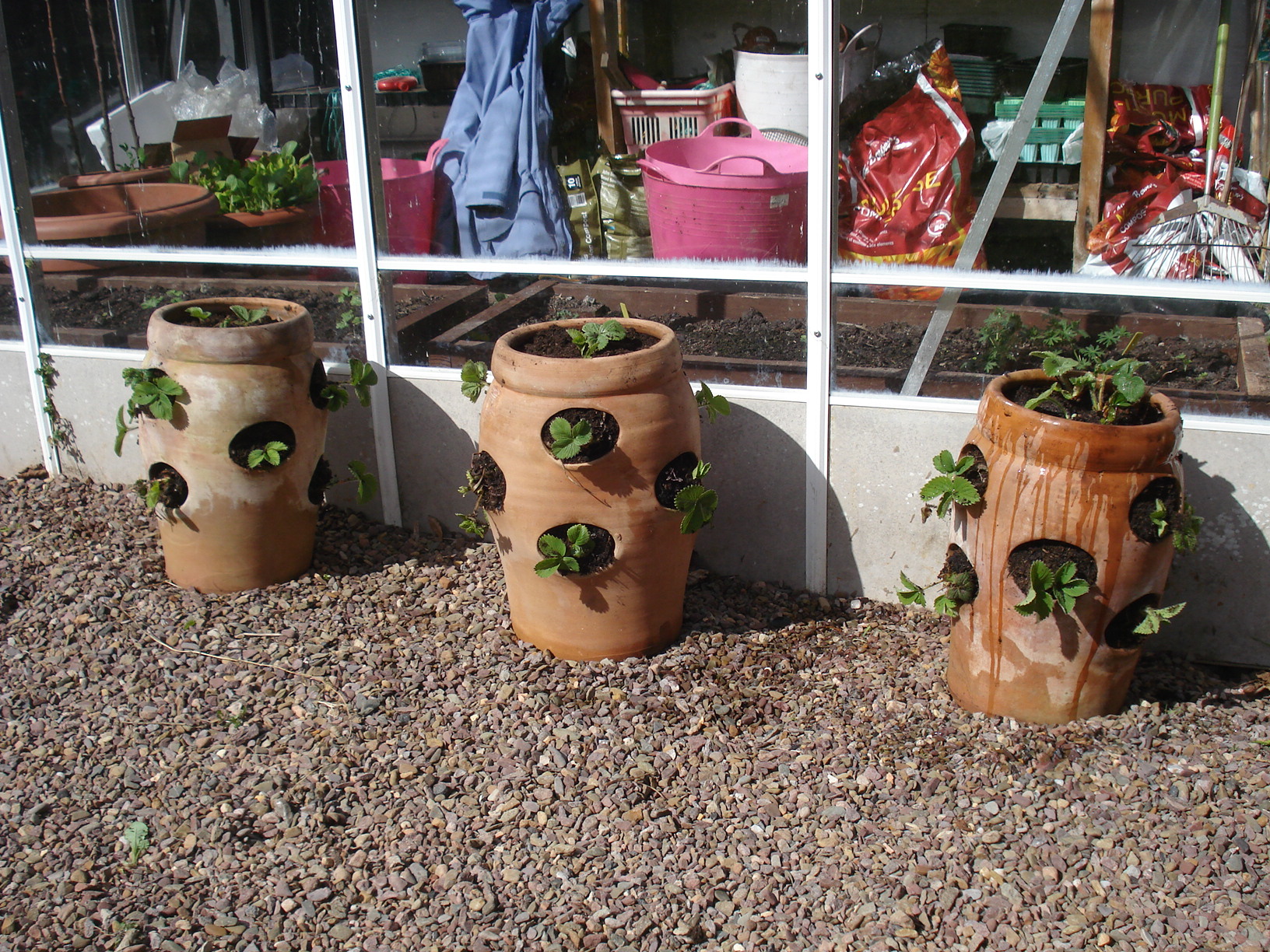 This year we bought new plants and put them in a raised bed. However, the badger ate them. We rescued some runners from our old plants and while we did harvest a small crop we only managed three small pots of strawberry jam.